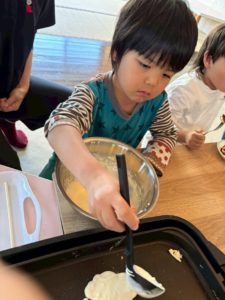 この日はみんなでホットケーキ作りに挑戦しました✨材料を混ぜるところから、焼く工程まで一人ひとりが体験。「まぜる」「すくう」「流す」「ひっくり返す」など、手先を使った活動を楽しみながら取り組みました😊 焼き上がっていく様子 […]