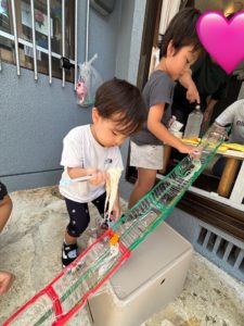 ペットボトルに水を入れて、「どうなるかな?」とドキドキしながら挑戦✨ 水が勢いよくあふれる瞬間に👀「えっ!」😆「すごい!」と、子どもたちの表情も一気に変わります。 実験あそびは、✔ 予想する力✔ 集中力✔ ことばで気持ち […]