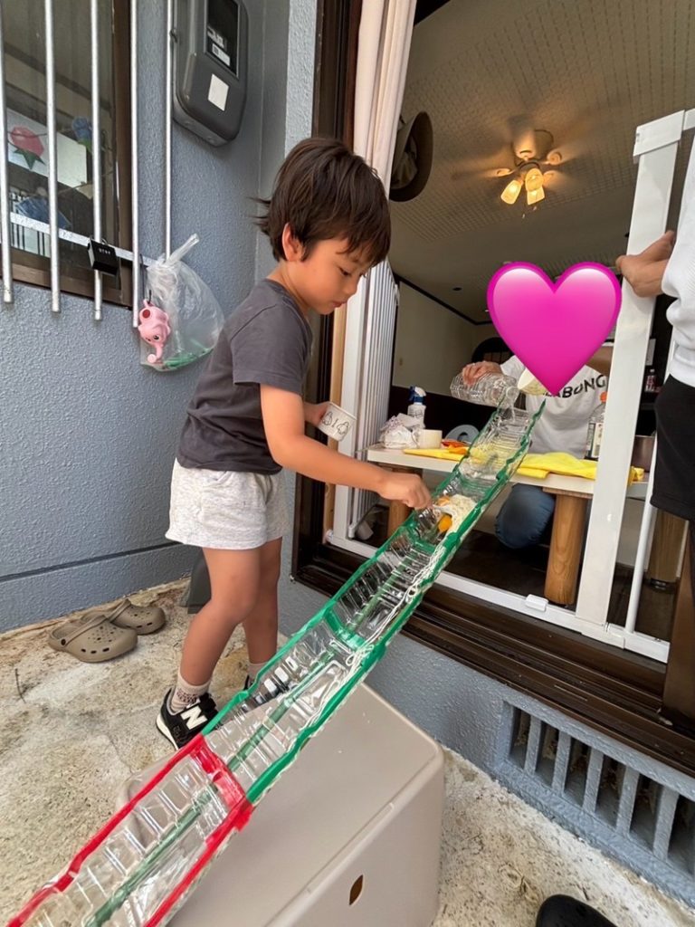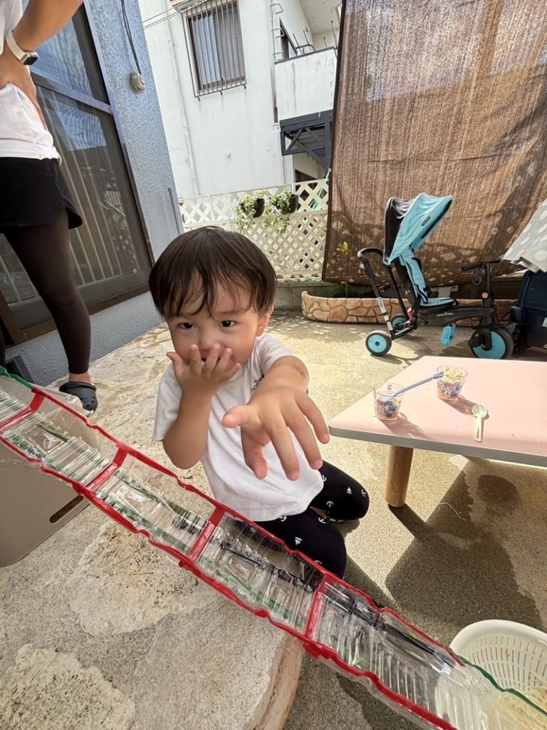 透明なレーンをそうめんが流れてくると、みんなワクワク顔☺️