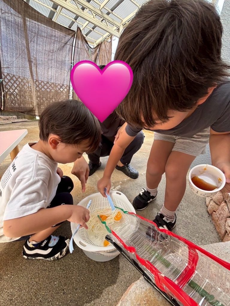 8月8日、わらかなでは夏の風物詩「流しそうめん」を楽しみました🌿✨