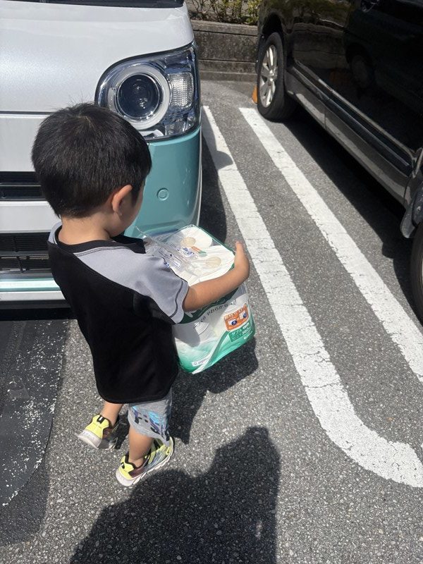 ✅購入したものを袋に入れて車まで運ぶ