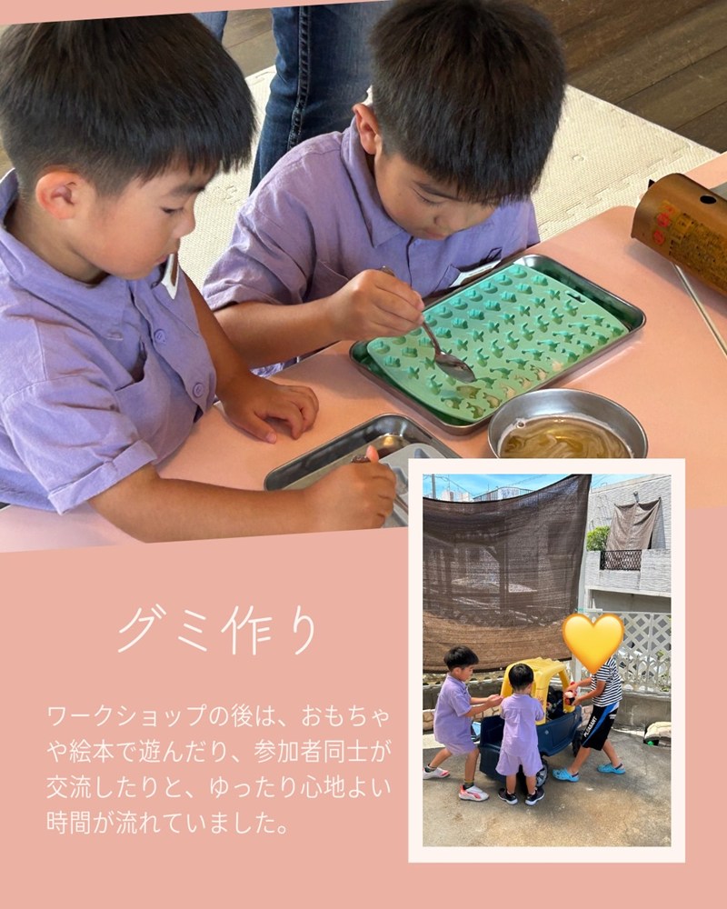 6月22日(日)に顔晴れ会が開催した「ゆんたく会(きょうだいの会)」では、親子で楽しめる手作りグミのワークショップ🍬が行われました!