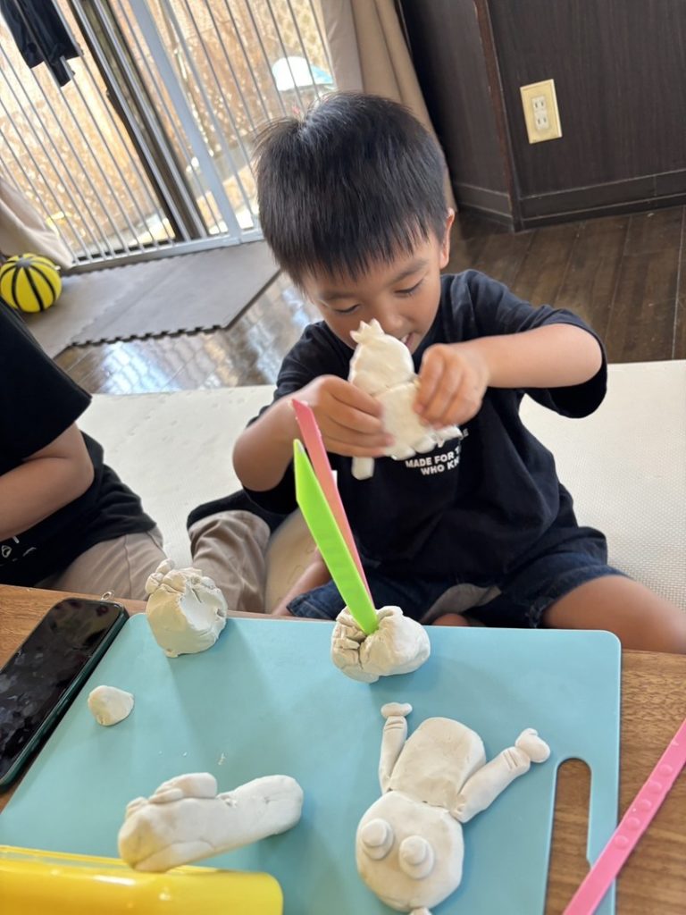完成した粘土作品に大満足の子どもたちでした🌈