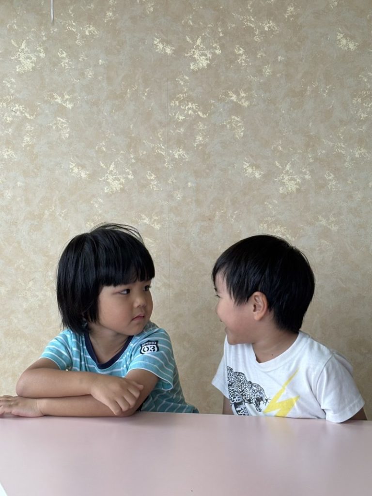 お友だち同士で顔を見合わせて笑う姿。