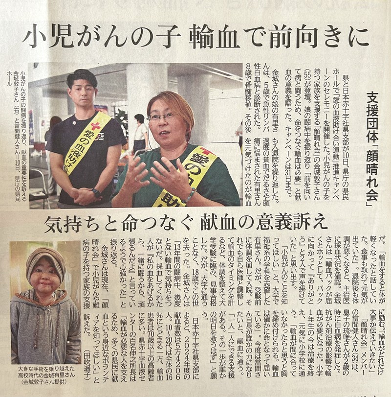 7月17日付の琉球新報に、「顔晴れ会」が掲載されました✨