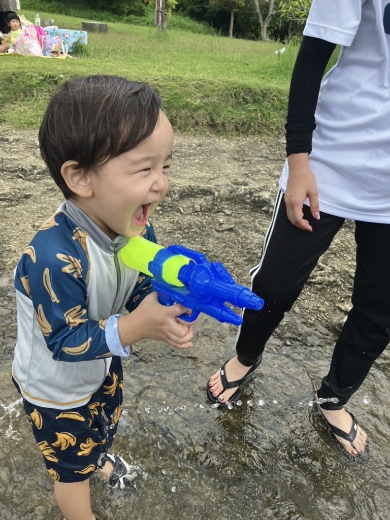 水鉄砲を片手に大はしゃぎしたり、座り込んで水を手ですくって感触を楽しんだり…。みんなの全身から「たのしい!」があふれていました🌈