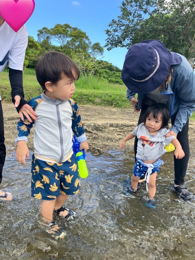 最初は水にドキドキしていた子も、足元に流れる冷たい水の感触やちゃぷちゃぷと音を立てる水面に興味津々!気がつけば大きな笑顔でびしょぬれに!💧