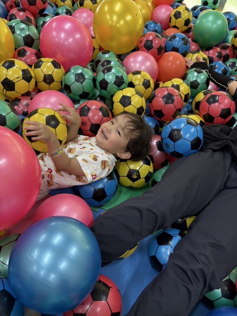 好きな色で自由に描いたり、大きなシャボン玉を追いかけて