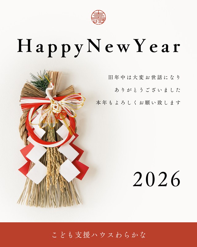 旧年中はこども支援ハウスわらかな の活動にあたたかいご理解とご支援を賜り、誠にありがとうございました。