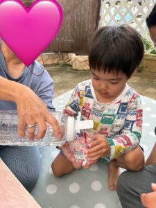 ペットボトルに水を入れて、「どうなるかな?」とドキドキしながら挑戦✨ 水が勢いよくあふれる瞬間に👀「えっ!」😆「すごい!」と、子どもたちの表情も一気に変わります。 実験あそびは、✔ 予想する力✔ 集中力✔ ことばで気持ち […]