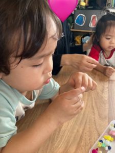 小さなビーズをつまむ、ひもに通す、順番を考える。一つひとつの動作に、👉 指先の力👉 集中力👉 見通しをもつ力がたくさん詰まっています。 「できた!」「もう一個やる!」完成したリースを手にした時の表情は、とても誇らしげでし […]